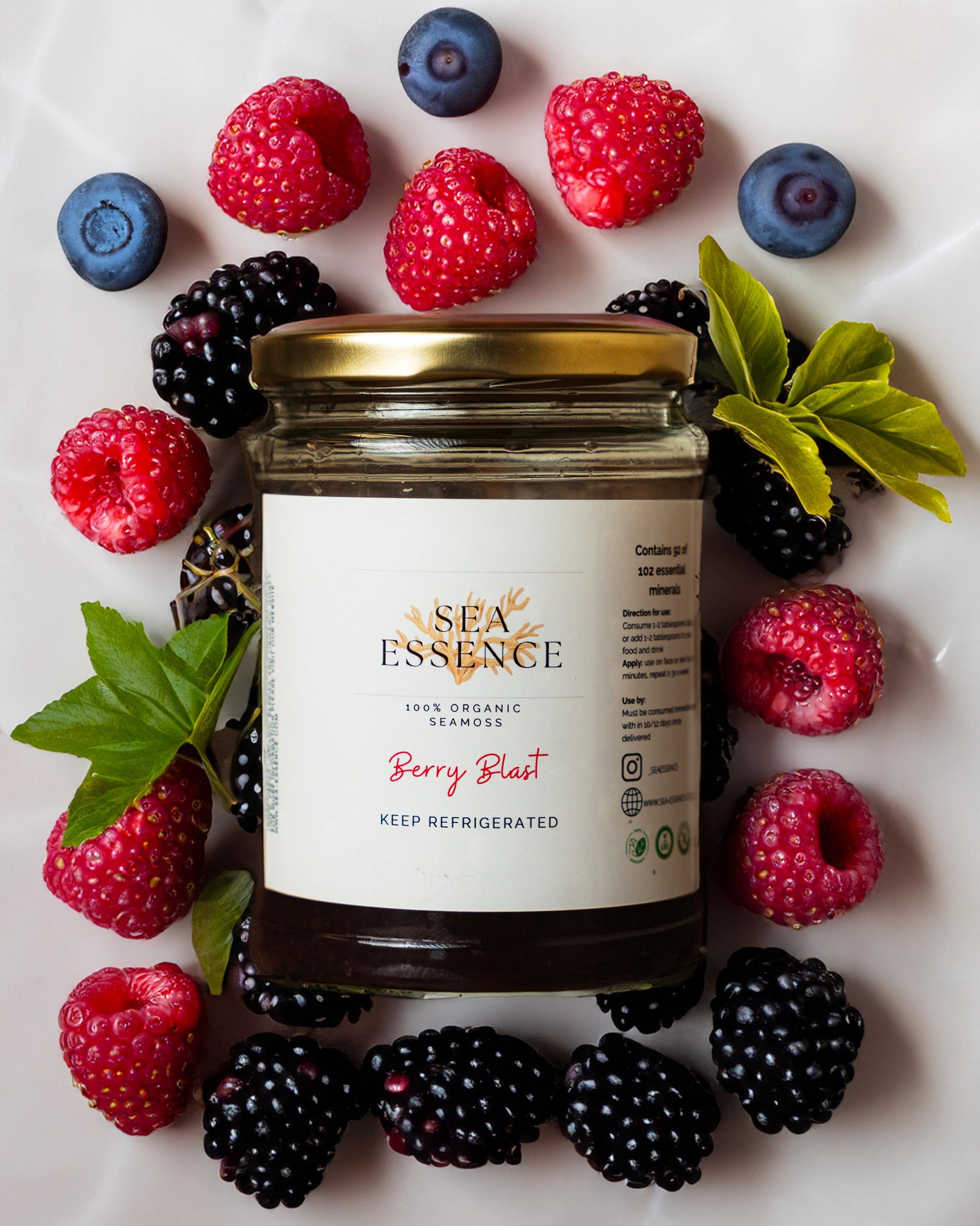 We believe that wellness should taste good and feel good. That’s why our Berry Blast Sea Moss Gel is made with the highest quality ingredients, carefully selected to deliver maximum health benefits without compromising on flavor. It’s the perfect blend of taste and nutrition, offering you a convenient way to enhance your well-being every day.