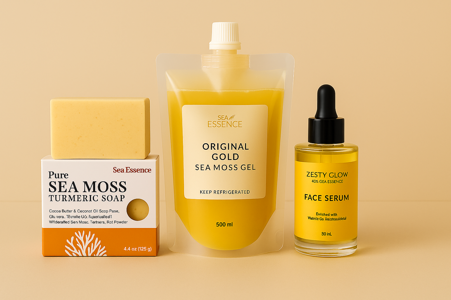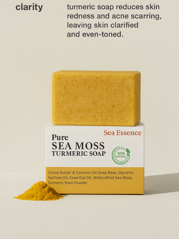 - Turmeric SeaMoss Soap — gentle daily cleanse to visibly brighten without stripping.